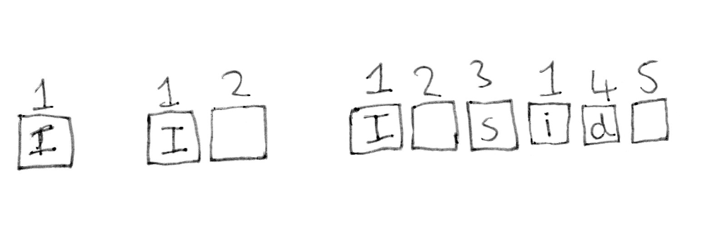 We know that 1 must be either a or i because it is a real word on its own. if we go in alphabetical order then we will find out that a would not be possible here because the a must go in between an s and a d, and you can take a few minutes to work out that a_sad_ cannot be a real word. so instead we look at i. placing this letter in between s and d would be good, because that makes sid which can be used in many words. the sheet now looks like this: